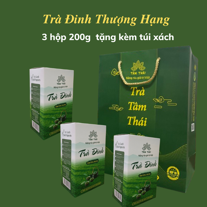Trà Đinh Thượng Hạng 3 hộp 200g tặng kèm túi Trà Tâm Thái Trà Đinh Ngọc Tân Cương Trà Thái Nguyên 6 gói 100g